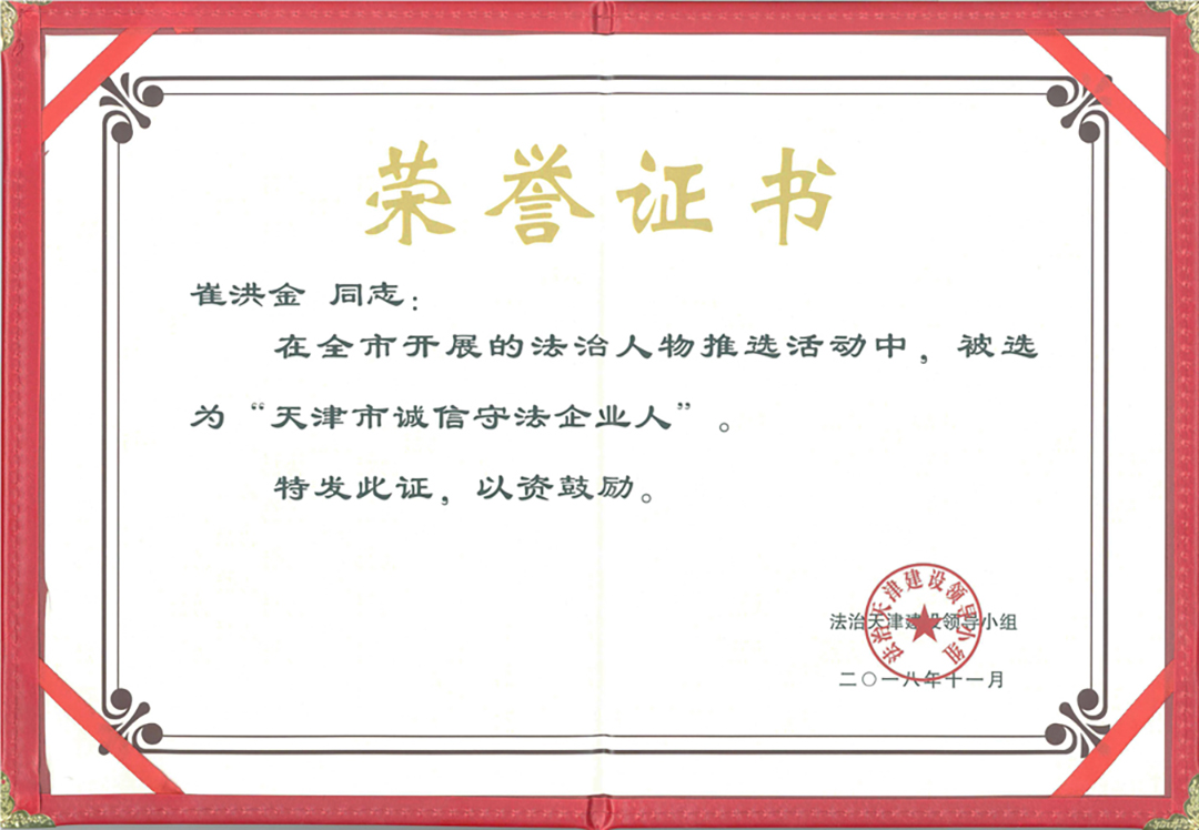 2016年董事長(cháng)崔洪金榮獲誠信守法企業(yè)人稱(chēng)號
