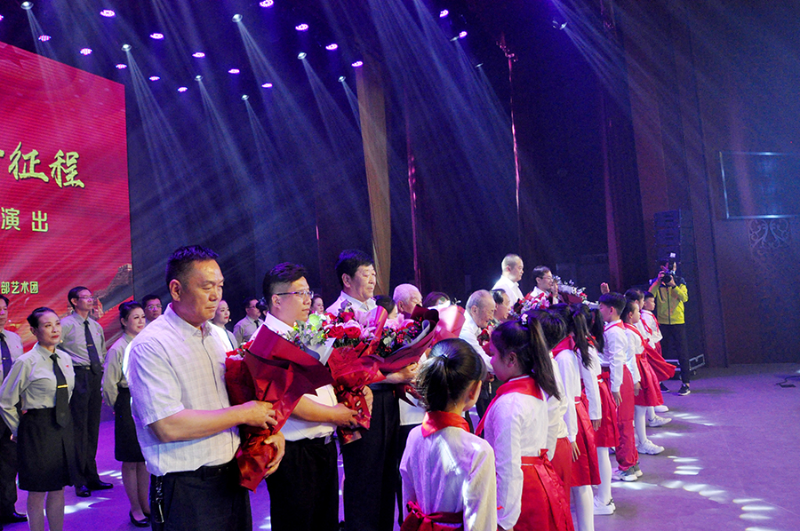 整場(chǎng)演出在《南湖的船黨的搖籃》歌舞演唱中拉開(kāi)帷幕,氣勢渾厚的歌聲、簡(jiǎn)單樸實(shí)的語(yǔ)言唱出了人民群眾對中國共產(chǎn)黨的深情和厚愛(ài)。隨后,詩(shī)朗誦《頌歌獻給偉大的黨》舞蹈、《映山紅》、原唱歌曲《我是老兵》等節目精彩紛呈,在《我是老兵》節目后主持人特別邀請東麗區十位優(yōu)秀退役軍人代表上臺,介紹他們的優(yōu)秀事跡并接受少先隊員們的獻花。臺下幾百名退役軍人代表觀(guān)看演出,對十位優(yōu)秀代表事跡深受鼓舞,勵志傳承紅色基因,爭做時(shí)代新人,喜迎建黨100周年。