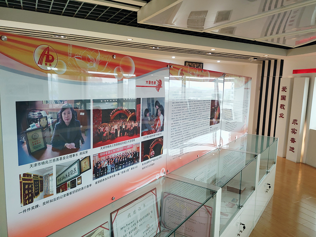 隨后在五樓文化展廳,崔董事長(cháng)把重點(diǎn)聚焦到慈善老人崔奶奶身上,作為崔洪金和崔洪英兩位董事長(cháng)的母親,崔奶奶樂(lè )善好施,大愛(ài)無(wú)疆的美德完全傳承到了兩位董事長(cháng)身上,并得到了更大發(fā)揚。崔洪金董事長(cháng)常說(shuō):父母之恩,厚如高山,深似大海,父母給了我們生存的權利和擁有的一切。他曾是一名軍人,深受母親的影響和教誨,能將安達集團做到今天,并成立了以母親命名的“天津市楊兆蘭慈善基金會(huì )”。通過(guò)楊兆蘭慈善基金會(huì )繼續將母親的善舉大愛(ài)延續傳承,持續幫助到更多困難家庭,殘疾人士,進(jìn)一步推動(dòng)天津市慈善事業(yè)發(fā)展。同樣圣發(fā)集團崔洪英董事長(cháng)也是為了完成母親的遺愿,建立了天津楊兆蘭養老院,為敬老愛(ài)老的路上一直傳承這份大愛(ài)。