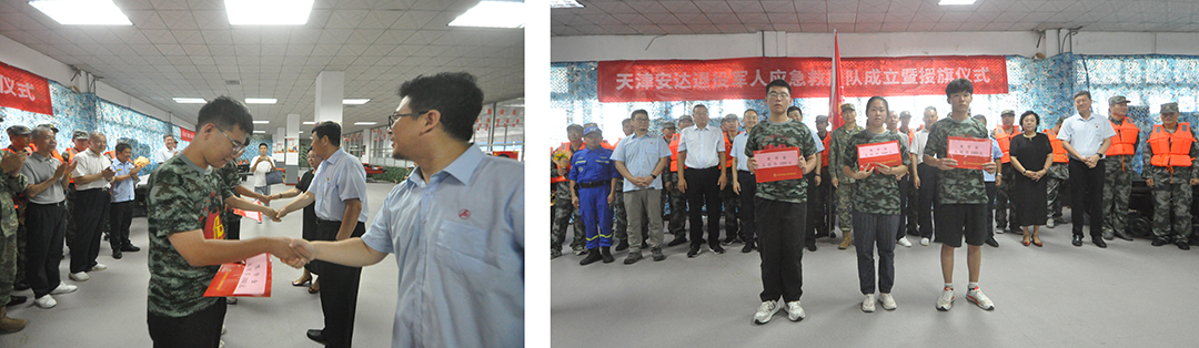 鼓勵和引導社會(huì )應急力量健康發(fā)展是壯大我區應急救援隊伍輔助力量的重要載體。8月21日上午,“天津安達退役軍人應急救援隊”成立塈“關(guān)心下一代成長(cháng)”主題活動(dòng),在區委、區政府的關(guān)心下,在區應急管理局、區退役軍人事務(wù)局以及區關(guān)工委的大力支持下順利舉行。區委常委、人民武裝部部長(cháng)、雙擁領(lǐng)導小組副組長(cháng)劉躍民,區雙擁領(lǐng)導小組辦公室主任、區退役軍人事務(wù)局局長(cháng)曹硯海,豐年村街道黨委副書(shū)記、街道辦主任王海龍,區工商聯(lián)一級調研員劉樹(shù)義,區老干部局副局長(cháng)、區關(guān)工委辦公室主任柴恭慶,區應急管理局黨委委員、四級調研員俞先軍,安達集團黨委書(shū)記、董事長(cháng)崔洪金,天津市楊兆蘭慈善基金會(huì )理事長(cháng)郝鳳榮,集團總經(jīng)理崔文連等相關(guān)領(lǐng)導共同出席活動(dòng)。