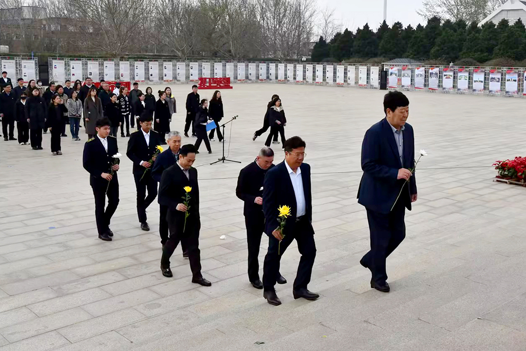天地英雄氣,千秋尚凜然。在莊嚴的革命烈士紀念碑前,全體人員列隊整齊、莊重肅穆,奏唱國歌,低頭默哀,以寄哀思。6名退役軍人托舉起花籃,邁著(zhù)鏗鏘有力的步伐,正步前行將花籃整齊擺放在紀念碑基座上,劉躍民、周青等同志緩步上前,駐足凝視,仔細整理緞帶。劉躍民同志帶領(lǐng)現場(chǎng)全體同志高舉右手,在鐫刻著(zhù)“人民英雄永垂不朽”八個(gè)大字的烈士紀念碑下,面向黨旗,莊嚴宣誓。隨后,崔洪金董事長(cháng)跟隨大家依次敬獻鮮花,深情瞻仰紀念碑,表達對先烈們的深切緬懷和崇高敬意。
