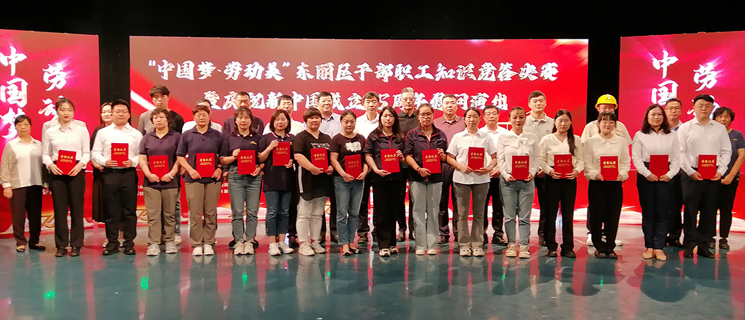 活動(dòng)以歌伴舞《時(shí)代號子》開(kāi)場(chǎng),唱出了東麗職工的豪情和壯志,唱響勞動(dòng)最偉大、勞動(dòng)最光榮。隨后,天津金隅混凝土有限公司工會(huì )等8支代表隊,進(jìn)行黨的創(chuàng )新理論知識競答,最后在頒獎環(huán)節,崔洪金為獲得銅獎選手頒發(fā)證書(shū),并合影留念。