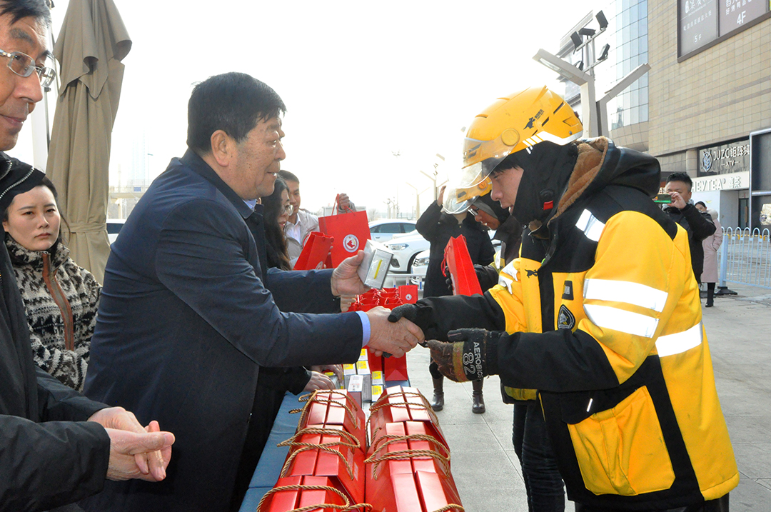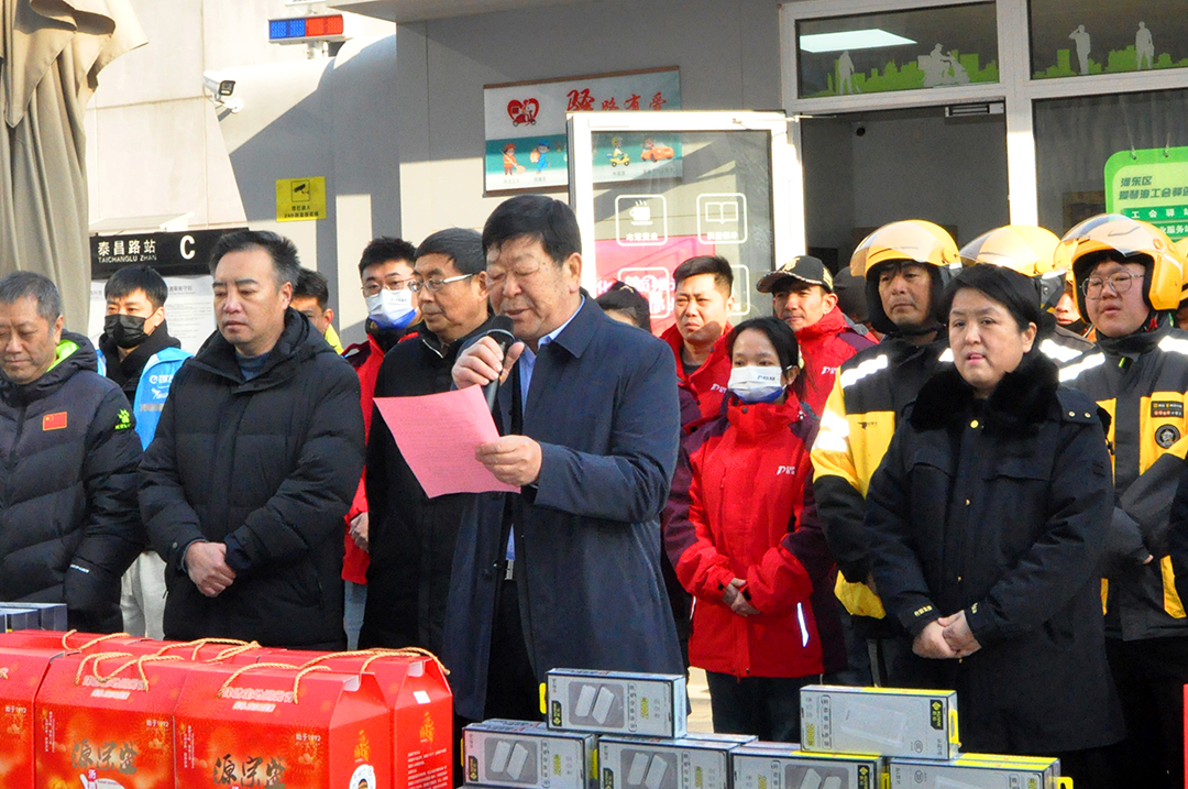 活動(dòng)當日,愛(ài)琴海廣場(chǎng)上人頭攢動(dòng),處處洋溢著(zhù)節日的喜慶氛圍。安達集團黨委書(shū)記、董事長(cháng)崔洪金,作為天津市現代物流協(xié)會(huì )會(huì )長(cháng),出席了此次活動(dòng)。崔洪金在現場(chǎng)發(fā)言中表示:“網(wǎng)約配送員是城市運轉的重要力量,春節期間,大家放棄休息,穿梭在大街小巷,為千家萬(wàn)戶(hù)送去便利,這種奉獻精神值得敬佩,協(xié)會(huì )希望通過(guò)此次活動(dòng),讓大家感受到行業(yè)的關(guān)愛(ài)與尊重。”