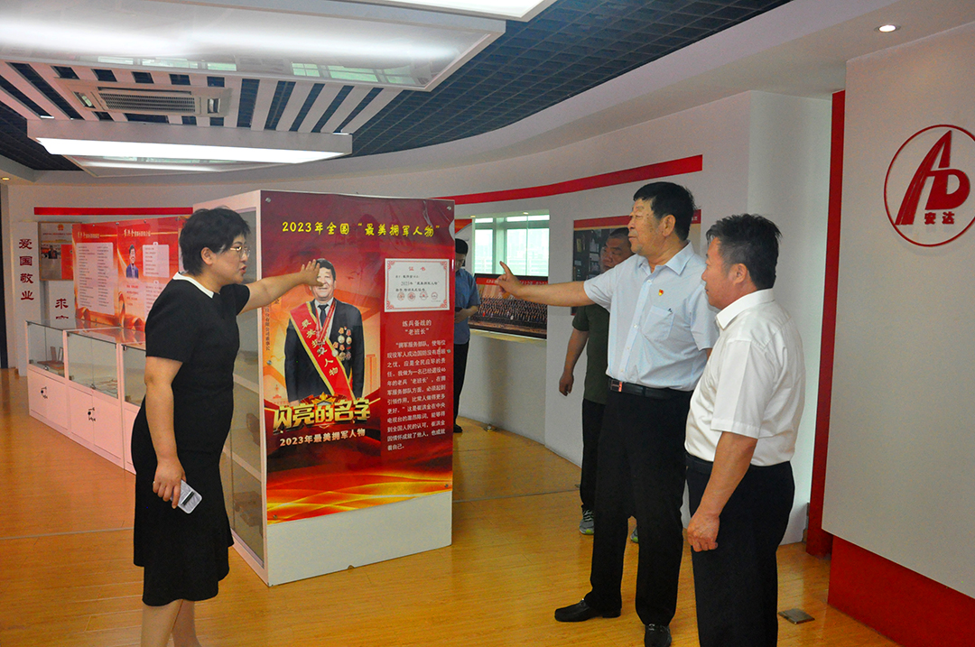 隨后,眾人移步至集團的文化展廳。展示著(zhù)安達集團多年來(lái)的發(fā)展歷程、所獲榮譽(yù)以及履行社會(huì )責任的點(diǎn)點(diǎn)滴滴。陸福寬會(huì )長(cháng)對安達集團在擁軍優(yōu)屬方面做出的突出貢獻給予了高度評價(jià):安達集團不僅在企業(yè)經(jīng)營(yíng)上成績(jì)斐然,更是在退役軍人就業(yè)創(chuàng )業(yè)、關(guān)愛(ài)幫扶等工作中發(fā)揮了示范引領(lǐng)作用,為全社會(huì )樹(shù)立了榜樣。